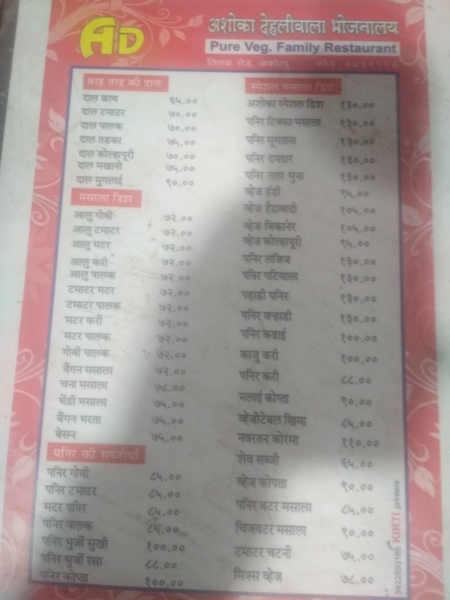 Welcome to Ashoka Dehliwala, an inviting vegetarian haven nestled in the bustling heart of Akola's Juna Cotton Market. This delightful restaurant specializes in offering a diverse range of flavors, with standout dishes like the exquisite Dal Makhani and the rich Cheese Butter Masala. Patrons rave about the outstanding taste and the generous portions that cater to both lunch and dinner needs, all at budget-friendly prices.